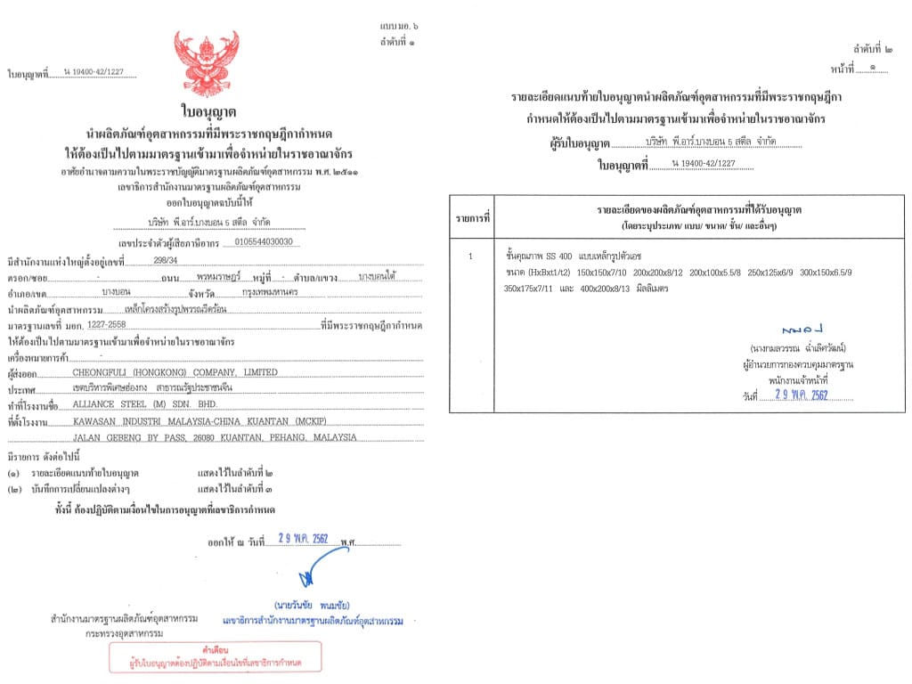 | ขนาด(mm)HxB | ความหนา(mm.) | น้ำหนัก(kg.) | ||